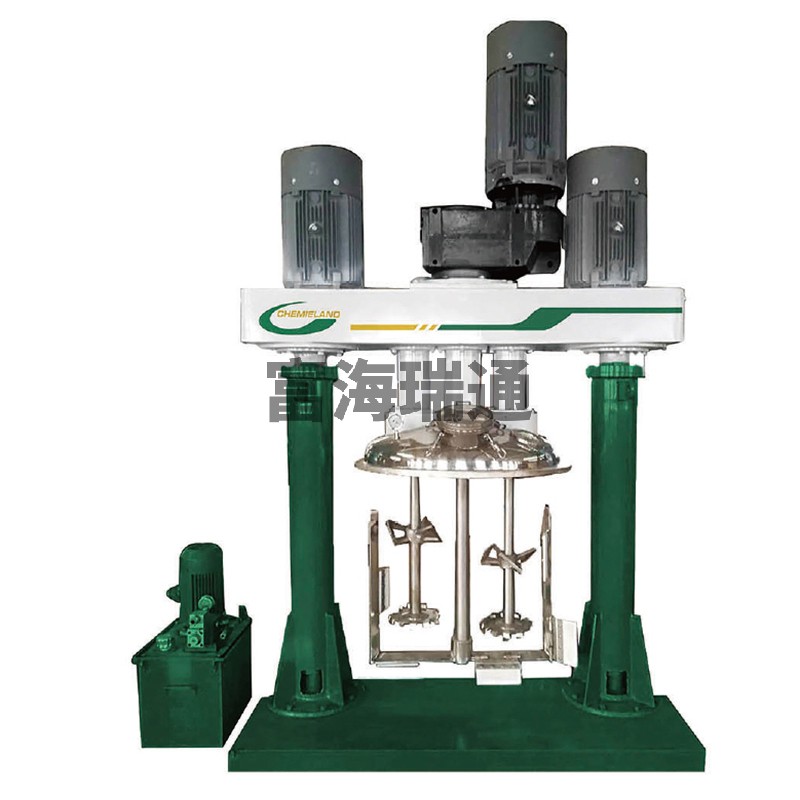 適用于高粘度涂料、油墨、膠黏劑、膩子、原子灰、真石漆等化工產(chǎn)品的攪拌混合。其機(jī)構(gòu)為:低速運轉(zhuǎn)的蝶形攪拌器使物料在缸內(nèi)翻動和混合,高速運轉(zhuǎn)的齒形分散盤與混合的物料產(chǎn)生強(qiáng)烈的剪切,是聚集物迅速達(dá)到混合、分散、溶解的要求。在其高低速的不同作用下,使物料能夠達(dá)到均勻的混合分散。